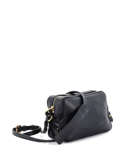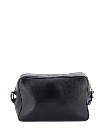 Pre-owned Logo Camera Bag Embossed Leather Small Crossbody Bag In Black
