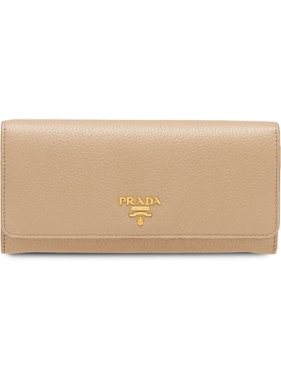 PRADA Logo Foldover Continental Wallet In Neutrals
