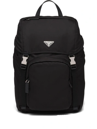 PRADA Logo-plaque Multi-pocket Backpack In Schwarz
