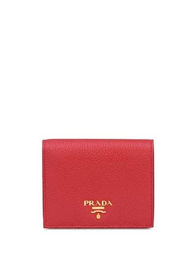 What would be a Prada collection without their logo-adorned accessories? Crafted from red calf leather, this snap wallet fulfils your brand envy. Simple but efficient! Featuring a pebbled leather texture, a front logo plaque, a snap button closure, gold-tone hardware, a note compartment, multiple interior card slots, a coin pocket and an internal logo stamp.