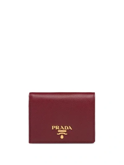 PRADA Logo Plaque Wallet In Red