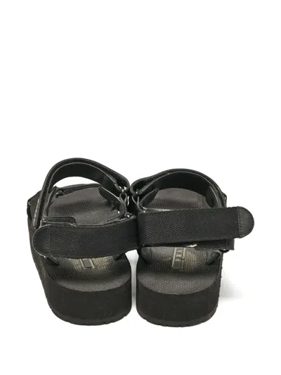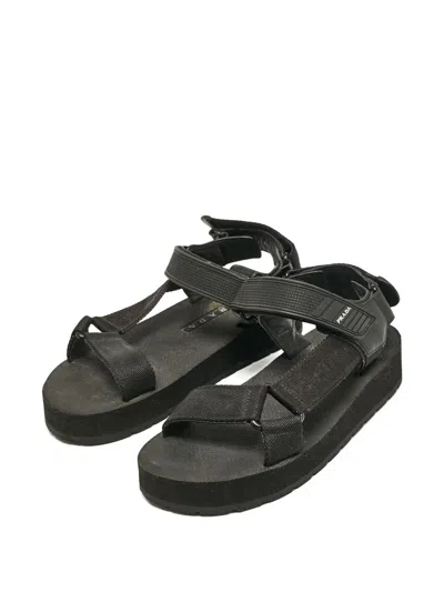 black rubber platform sole logo print touch strap fastening branded footbed Condition: GOOD. This previously owned and used item is in good condition with minimal signs of use. This may include fading of material or plating and scratches.