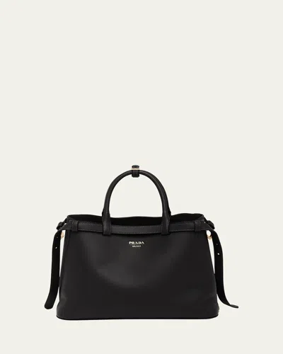 PRADA Medium Grain Leather Top-handle Bag In Nero