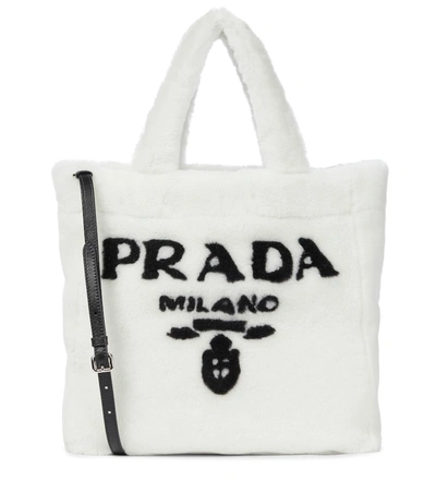 PRADA Medium Logo Shearling Tote In White