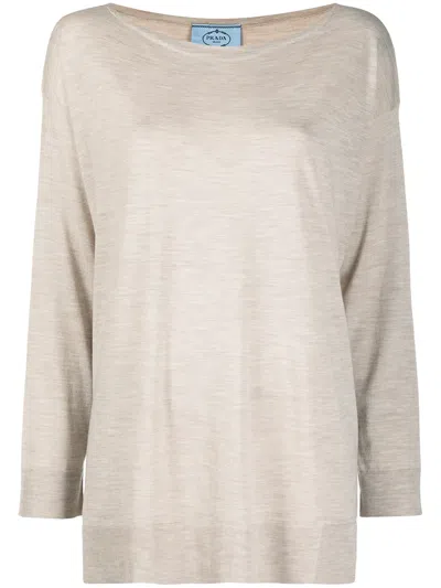 PRADA Mélange-effect T-shirt In Neutral