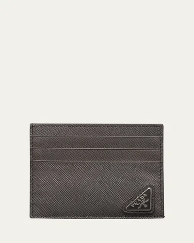 PRADA Men's Saffiano Leather Logo Card Case In Gray