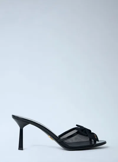 Heeled mules with mesh and bow detail. Open toe Slip-on style Stiletto heel