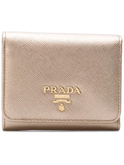 Gold-toned leather metallic flap mini wallet from Prada.