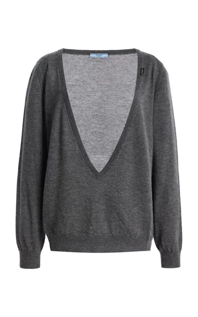 Miuccia Prada and Raf Simons reimagine hyper-feminine wardrobe motifs to create a fresh; sophisticated; and endlessly cool wardrobe for today and tomorrow.Knit from a super-fine cashmere; this sweater is defined by its ultra-deep V-neck that works best layered over a bra top; like [this silk style](https://www.modaoperandi.com/women/p/prada/top-1074533/723795).