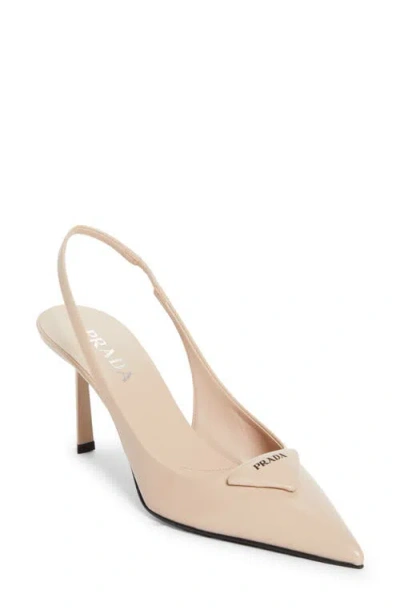 PRADA Modellerie Pointed Toe Slingback Pump In Neutral