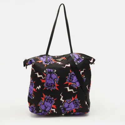 Pre-owned Multicolor Nylon And Leather Frankenstein Hand Print Tote