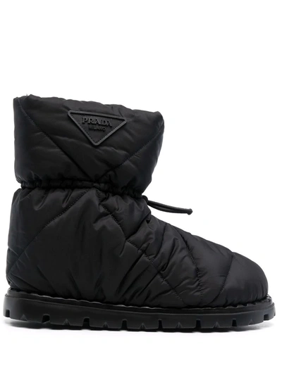 PRADA Black Quilted Nylon Drawstring Ankle Boots In Nero