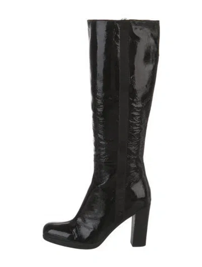 Prada Sport Patent Leather Knee-High Boots Black Round-Toes Platform Exposed Zip Closure at Sides | Prada Sport Patent Leather Boots in Black, Women's IT 35.5 | 5.5