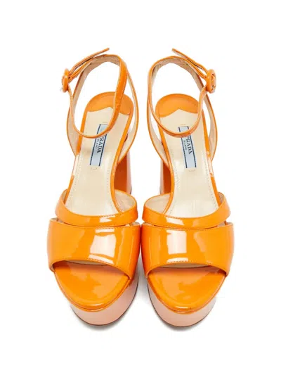 Pre-owned Platform Ankle-strap Sandals In Orange