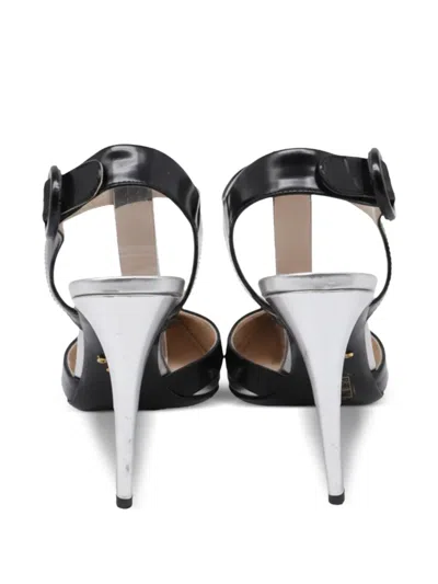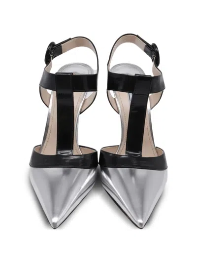 silver-tone black details leather pointed toe T-strap stiletto heel buckle closure Condition: EXCELLENT. This previously owned item is in near-perfect condition with no signs of damage or use.