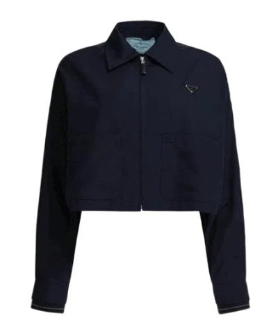 PRADA Poplin Jacket Featuring Front Pockets Buttons In Blue