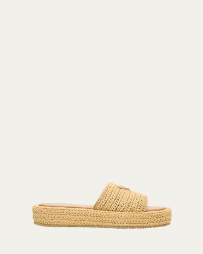 PRADA Raffia Single-band Platform Slides In Neutral