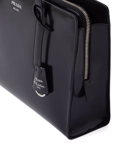 About The Brand: Classic, Sporty, Signature Style From Italy. Made In Italy Re-Edition 1995 Brushed Leather Mini Bag In Black Leather And Silver-Tone Hardware With Hot Stamped Logo, Brushed Leather, Removable Leather Keychain Interior Design Details: Nylon Logoed Interior, Zippered Center Compartment Measures 8.5In Wide X 6In High X 2.75In Deep Top Handles Drop 4In Removable, Adjustable Shoulder Strap Drops 24In Open Top With Zippered Center Pouch Please Note: All Measurements Were Taken By Hand And Are Approximate; Slight Variations May Occur. Our Products Are 100% Genuine. In Some Cases We Purchase Merchandise From Trusted Independent Suppliers And Not Directly From The Brand Owner. In All Cases We Stand By The Authenticity Of Every Product Sold On Our Site. We Are Not An Authorized Dealer Of This Product.