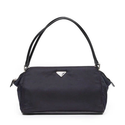 Prada Shoulder Bag in Purple/Black Nylon Canvas and Silver hardware. Dimensions - 30*17*5cm. Serial number - B11095. Inclusions - Card.