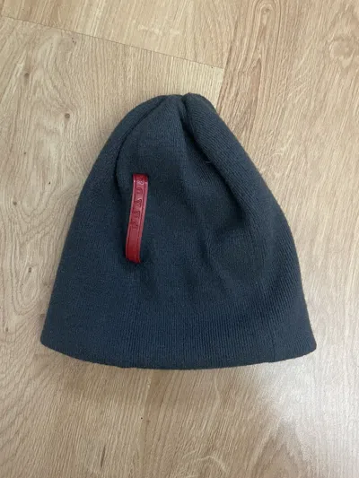 Very Good Condition, Double Layer Can Be Worn Inside Out | Prada Red Stripe Beanie in Grey, Men's