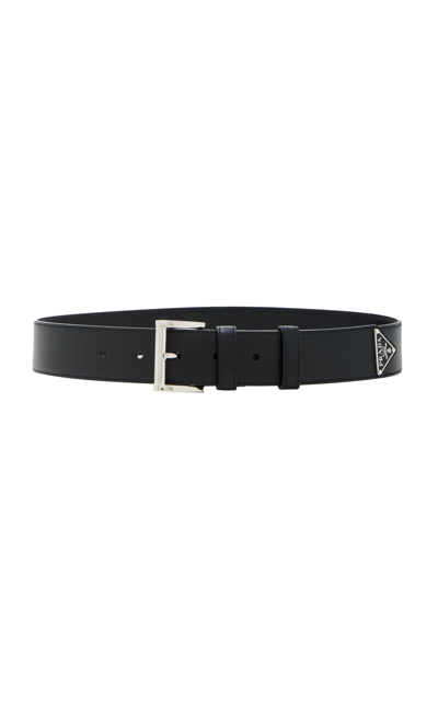 This season; Miuccia Prada and Raf Simons reimagines hyperfeminine wardrobe motifs to create a fresh; sophisticated; and endlessly cool wardrobe for today and tomorrow.This Prada belt has a classic slim silhouette made from smooth leather with a silver-tone buckle. Wear it over billowing dresses and oversized blazers.