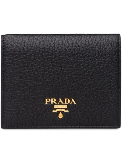 Keep the plastic safe in style with this wallet from Prada. Such style, in fact, that you'll want to whip it out at every and any occasion. So...this round's on you, right? Featuring a snap button closure, multiple interior card slots, a note compartment, a coin pocket, gold-tone hardware, a textured leather detail, a front logo plaque and a contrasting lining.