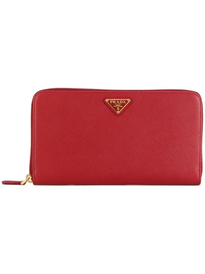 PRADA Saffiano Zip Wallet - Red