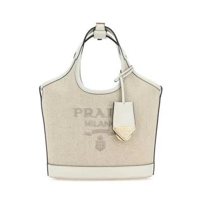 Prada Ladies Tote. SKU: 1BE074VOAH2DLI F0N86. Color: Naturalebianco. Prada Sand Canvas Handbag. Sand Canvas Handbag from Prada.