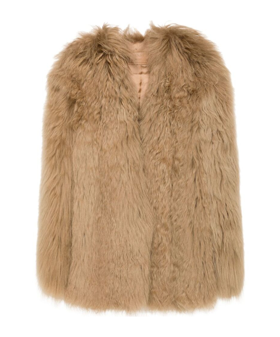 <p>camel brown shearling hook and eye fastening V-neck long sleeves no pockets satin lining straight hem</p><p><strong>MADE IN:</strong>Italy</p><p><strong>MATERIAL:</strong>Lining Composition Silk: 40.0%, Lining Composition Cupro: 60.0%, Outer Composition Lamb Fur: 100.0%, Outer Composition Sheepskin: 100.0%</p><p><strong>COLOR:</strong>BROWN</p> SKU: 56A154SOOO15PYF0040 Our Products Are 100% Genuine. In All Cases We Stand By The Authenticity Of Every Product Sold On Our Site.