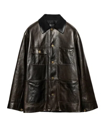 PRADA Shearling-lined Leather Jacket In Green