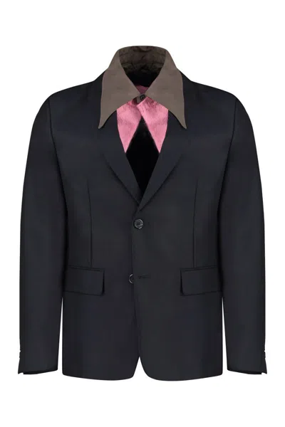 PRADA Men's Wool Single-breasted Jacket In Blue