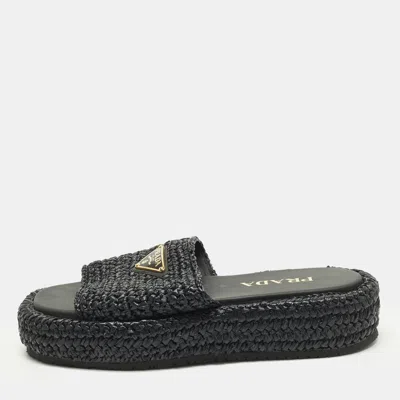 Pre-owned Size 37 Black Raffia Triangle Logo Flat Slides