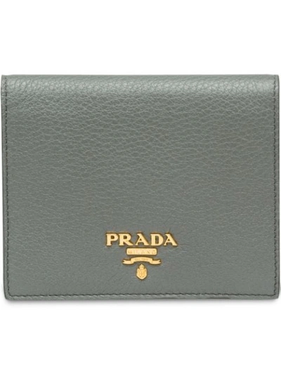 Founded by Mario Prada, the brand is known for producing timeless items with traditional Milanese construction. This grey and blue small leather wallet features a gold-tone logo plaque, a snap button closure and multiple interior card slots.