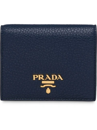 PRADA Small Logo-plaque Wallet In Blue