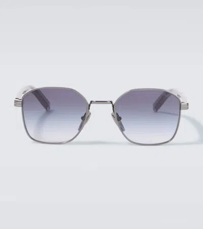 Frame material: metal, acetate. Frame color: silver. Lens filter category 2. Lens color: blue. Made in Italy. Includes: case, cleaning cloth. The color of the case may vary.