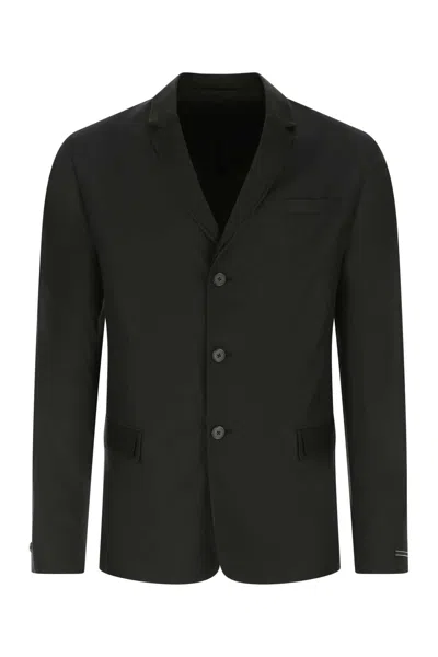 PRADA Structured Silk Blazer With Notch Lapel In Black