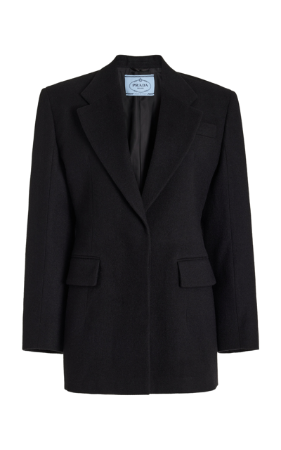 This season; Miuccia Prada and Raf Simons reimagines hyperfeminine wardrobe motifs to create a fresh; sophisticated; and endlessly cool wardrobe for today and tomorrow. This single breasted 'Giacca' blazer features notched lapels with flap pockets. Wear yours with wide leg pants for a chic suiting look.