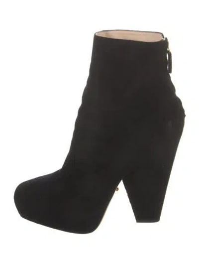 Prada Suede Ankle Boots Black Leather Trim Square-Toes Platform Zip Closures at Shafts Includes Dust Bag Fit: This style typically runs a half size small. | Prada Suede Boots in Black, Women's IT 39 | 9