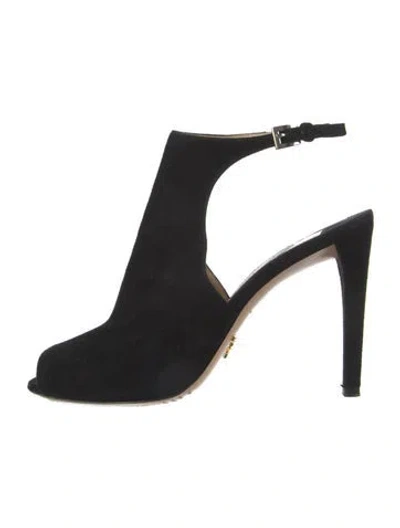 Prada Suede Mules Black Peep-Toes Buckle Closure at Ankles Includes Dust Bag Designer Fit: Pumps by Prada typically run a half size small. | Prada Suede Mules in Black, Women's IT 37.5 | 7.5