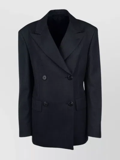 Longline silhouette | Structured shoulders | Notched lapels | Button detailing | Double-breasted