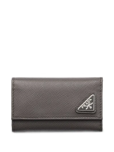 PRADA Textured Key Case In Gray