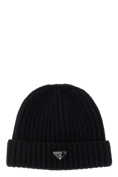 PRADA Triangle Logo Beanie In Black