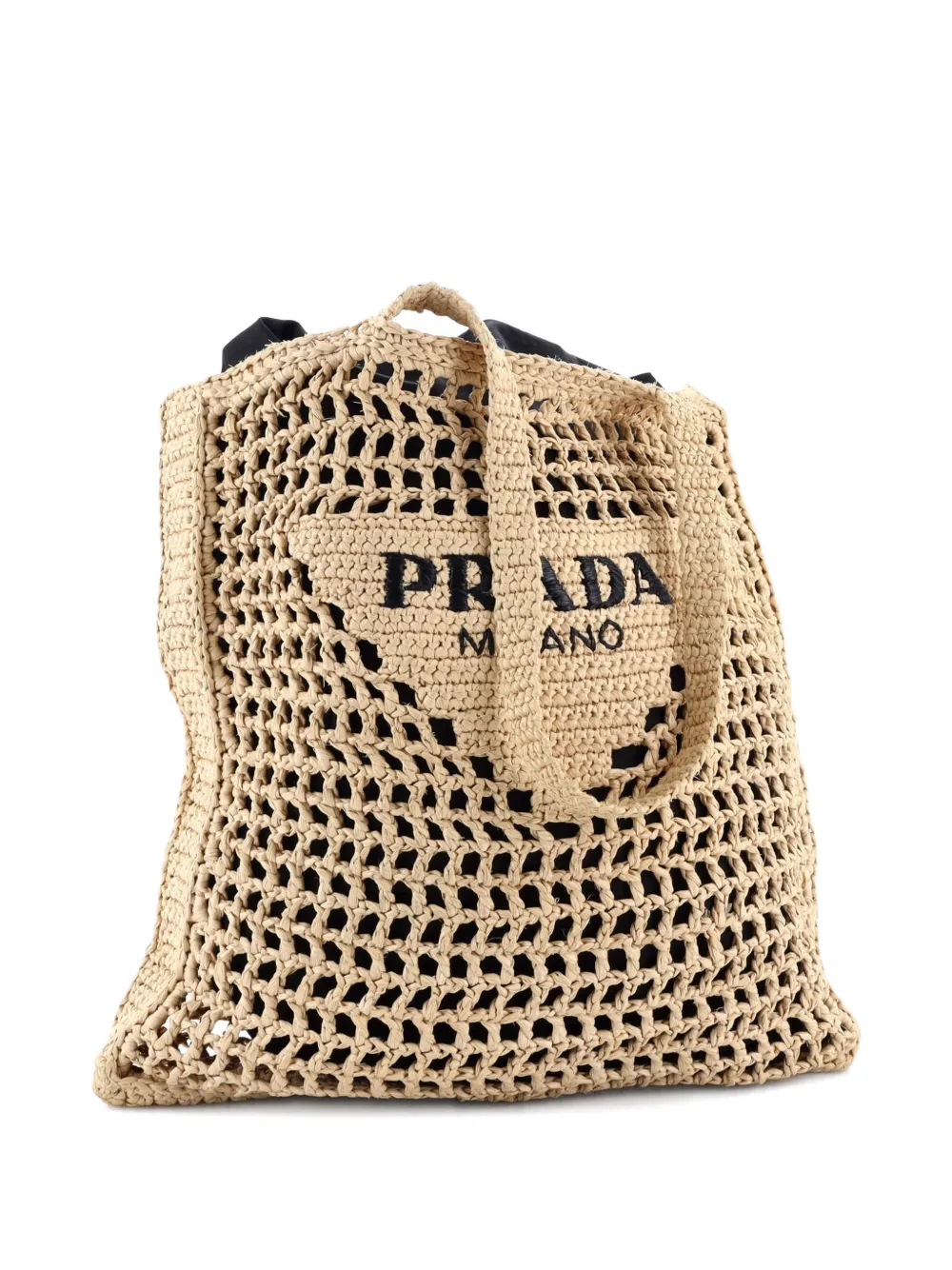 Pre-owned Triangle Logo Open Raffia Tote Bag In Neutral