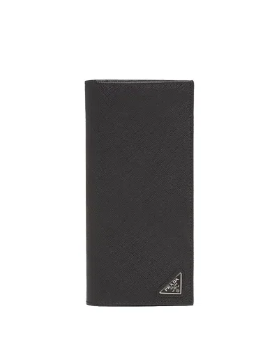 PRADA Triangle Logo Saffiano Leather Wallet In Black