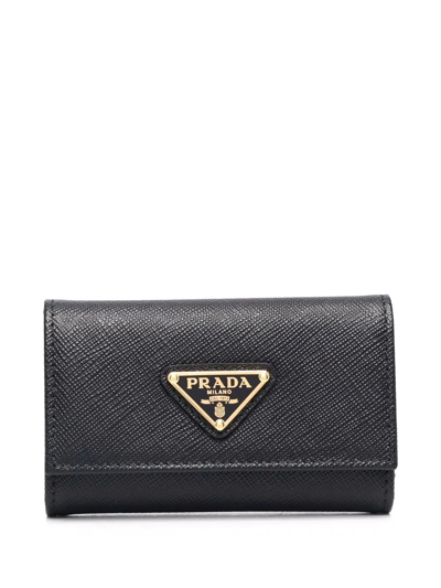 PRADA Triangle Logo Saffiano-leather Keyring Case In Black
