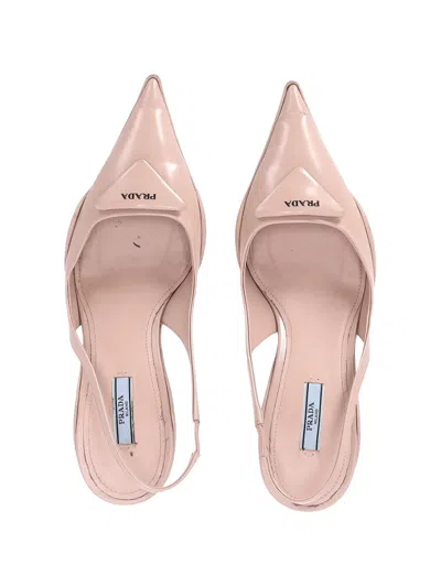 Pre-owned Triangle-logo Slingback Pumps In Neutral