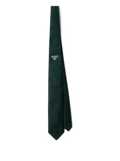 PRADA Triangle-logo Tie In Green