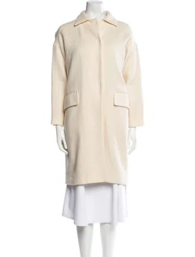 Prada Virgin Wool Coat Vintage From the 2000's Collection by Miuccia Prada Neutrals Pointed Collar Knee-Length Flap Pockets & Snap Closure Fit: Coats by Prada typically fit true to size. | Prada Vintage 2000's Coat in Neutrals, Women's US6, IT42 | M