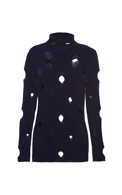 PRADA Women's Distressed Wool Turtleneck Top In Black,navy