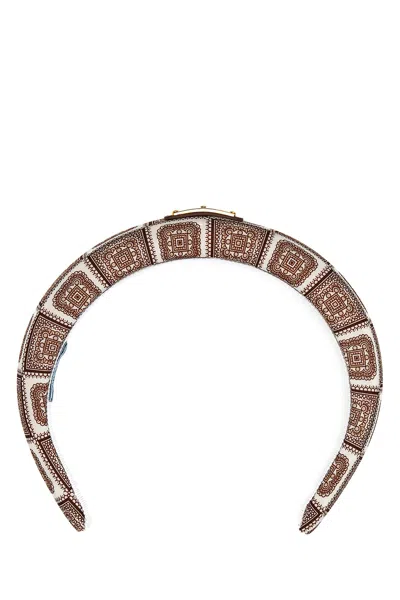PRADA Women Printed Twill Headband In Brown
